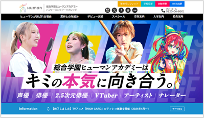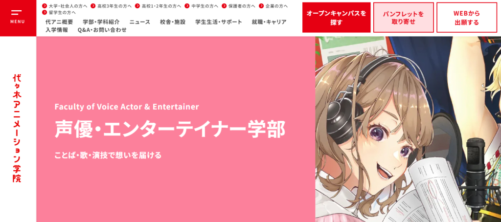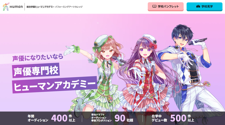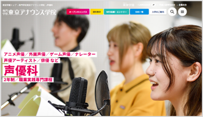 声優教育50年以上の経験から得た育成ノウハウ、業界コネクションを売りにしている老舗の専門学校です。