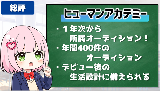 50年の運営ノウハウが詰まっているだけあり、学校設備やデビューサポートが充実していると思いました。