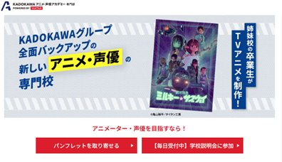 1971年に設立された日本ではじめて設立した声優科のある専門学校です。